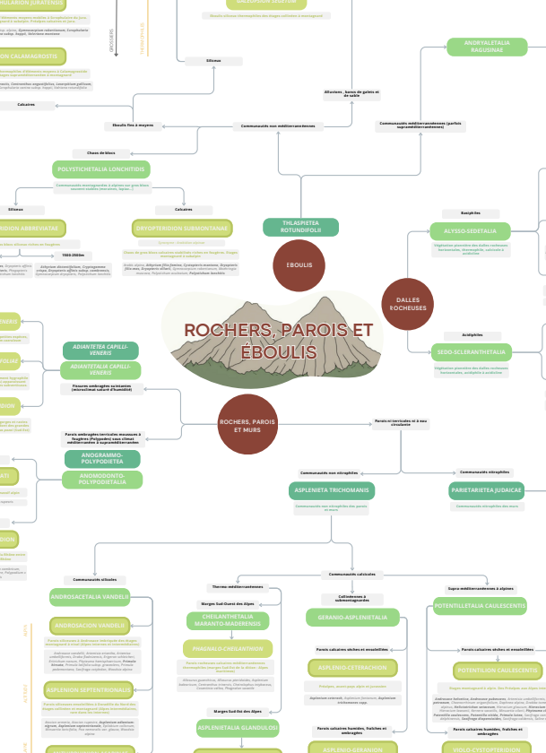 Carte mentale phytosociologique des parois, dalles, murs et éboulis des Alpes françaises